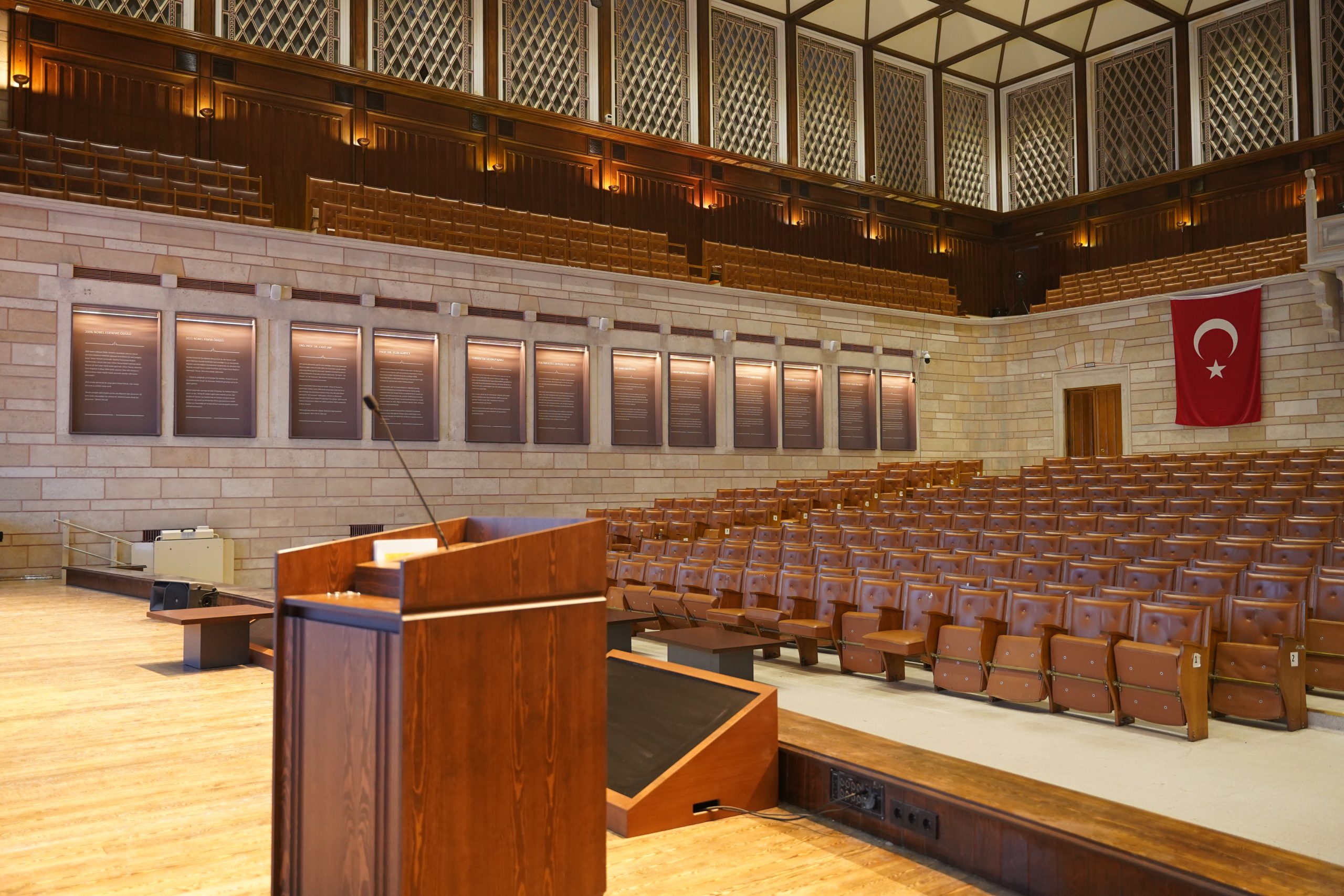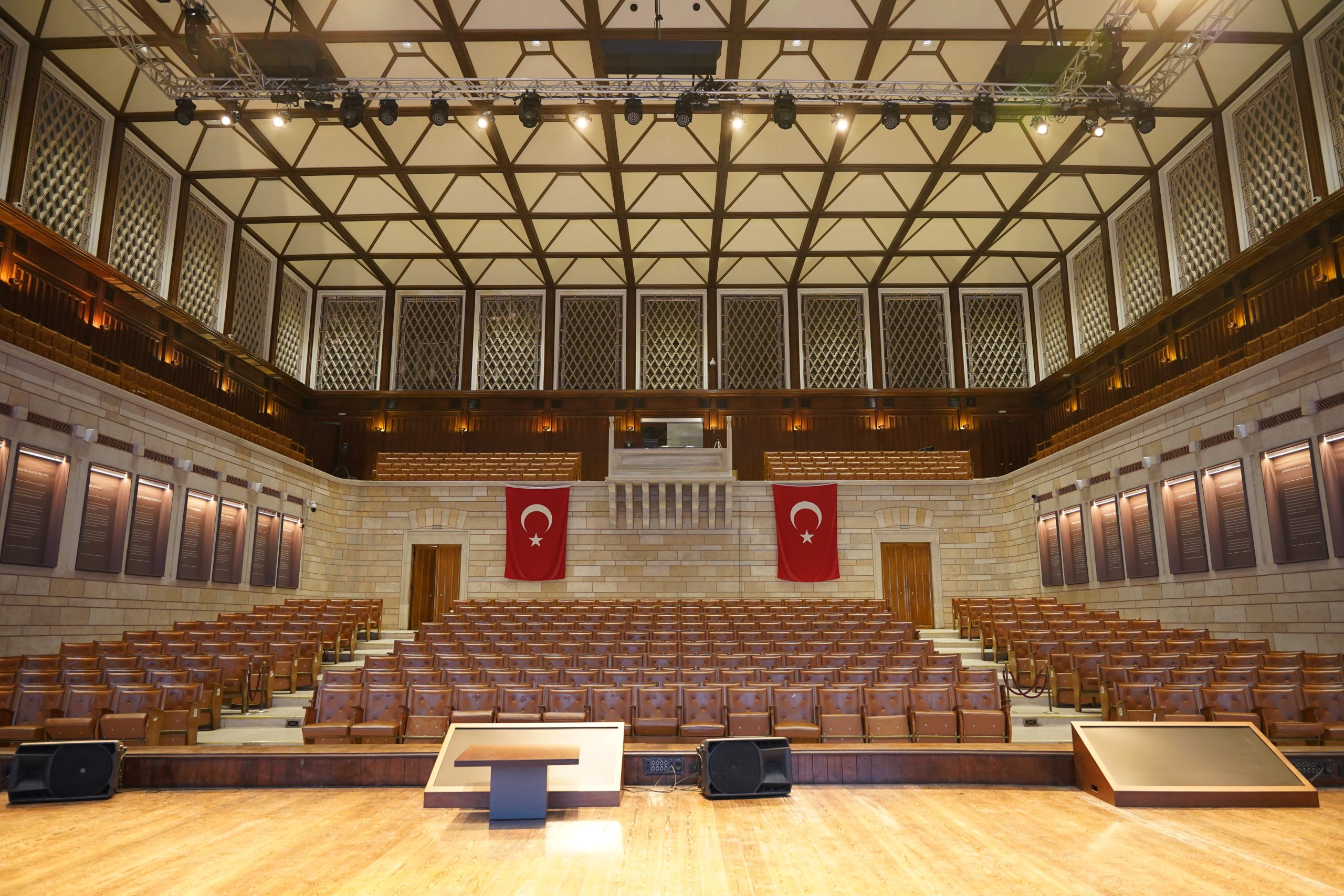 Uygulama sürecinde, salonun teknik altyapısı; aydınlatma, enerji dağıtımı ve destekleyici sistemlerle bütüncül bir yaklaşımla ele alınmıştır. Yapının mevcut mimari dokusuna uyum sağlayan, sade ve kontrollü çözümler tercih edilerek hem teknik gereklilikler hem de mekânsal bütünlük korunmuştur. Tüm çalışmalar, üniversite yerleşkesinin kullanım düzeni dikkate alınarak planlı ve koordineli biçimde yürütülmüştür.